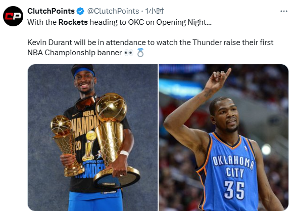 杜兰特火箭首秀:揭幕战见证雷霆升冠军旗帜 预计不会获顶薪续约合同